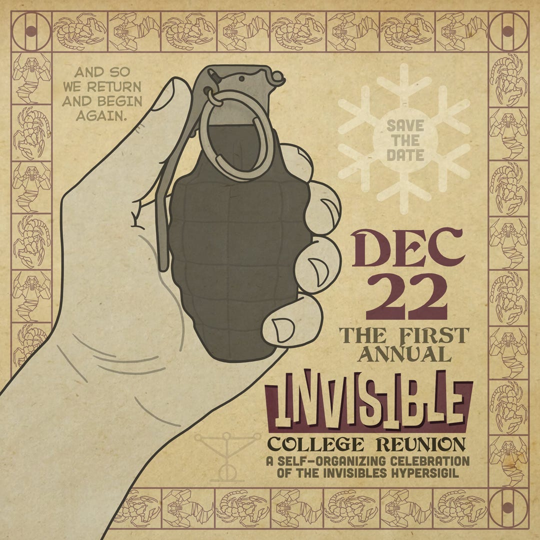 The morning after Maybe Night I’ve set in motion a self-organizing celebration of The Invisibles hypersigil, details slowly but surely emerging here: https://invisible-college-reunion.neocities.org/